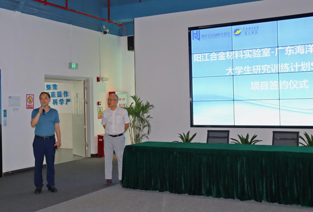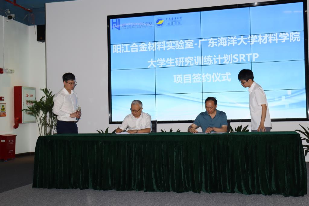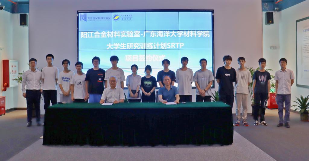 5月25日下午,阳江合金材料实验室-开云kaiyun登录入口材料学院“学生研究训练计划”(SRTP)签约仪式在阳江合金材料实验室举行。阳江合金材料实验室主任尚成嘉教授和开云kaiyun登录入口材料学院院长车晓舟教授代表合作双方签署了项目计划书。2022年度开展2项SRTP项目,共14名学生参加,由郭福建博士、袁胜福博士和李伟章老师担任指导教师。材料学院全体师生见证了项目计划书的签订。