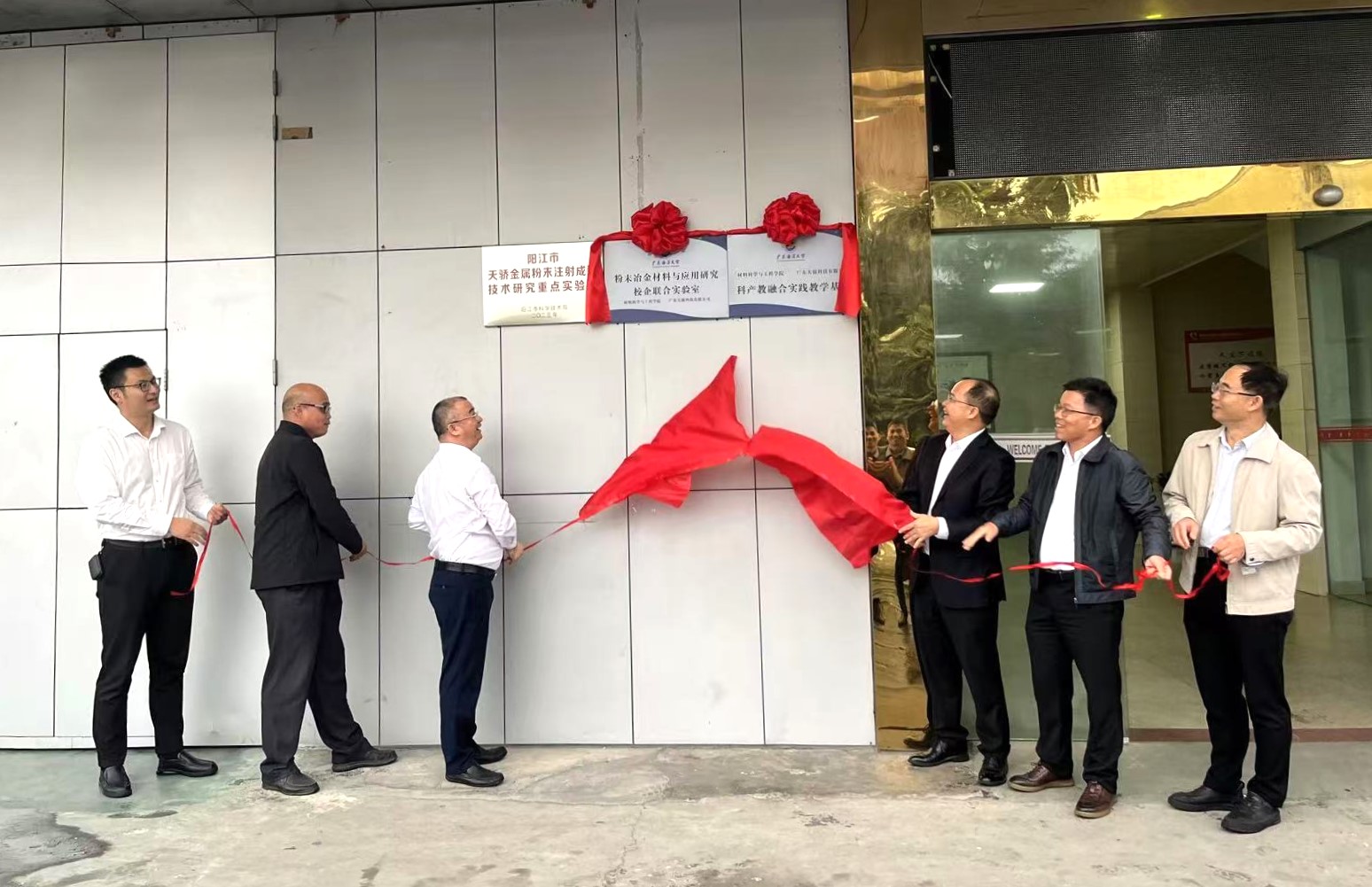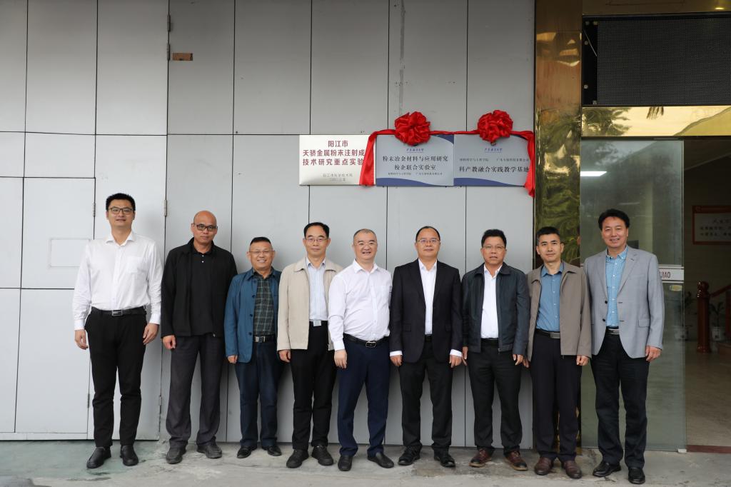 11月20日下午,材料科学与工程学院与广东天骄科技有限公司举行“开云kaiyun登录入口-广东天骄科技有限公司共建科产教融合实践教学基地与校企联合实验室”揭牌仪式。党委常委、副校长、阳江校区党委书记、管理办公室主任周昌仕出席仪式并揭牌。阳江校区党委副书记丁永成,材料科学与工程学院党总支书记李毅,学院院长师文庆,教学科研部部长白浚宇,资产财务部部长郭恩松参加活动。