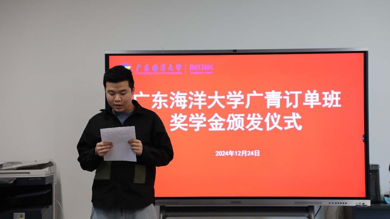 订单班学生李业水作为优秀学生代表发言并分享了学习心得。