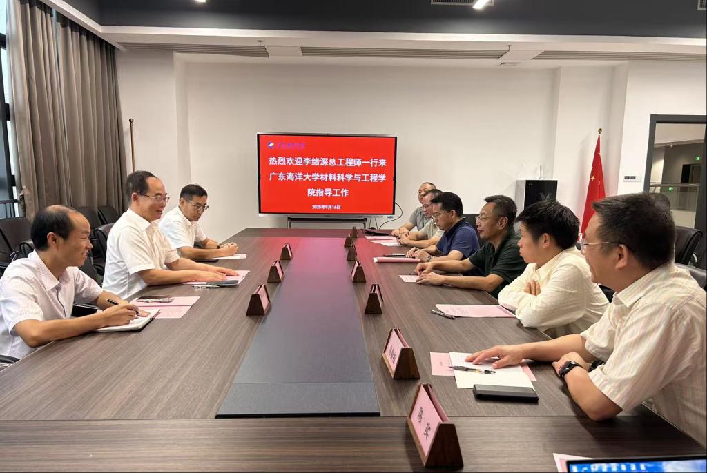 9月16日, 湛江湾实验室总工程师李绪深、中海石油(中国)有限湛江分公司副总工程师马勇新一行8人来材料科学与工程学院调研交流。学院院长师文庆、副院长尹冬松及薛名山教授参加活动。
