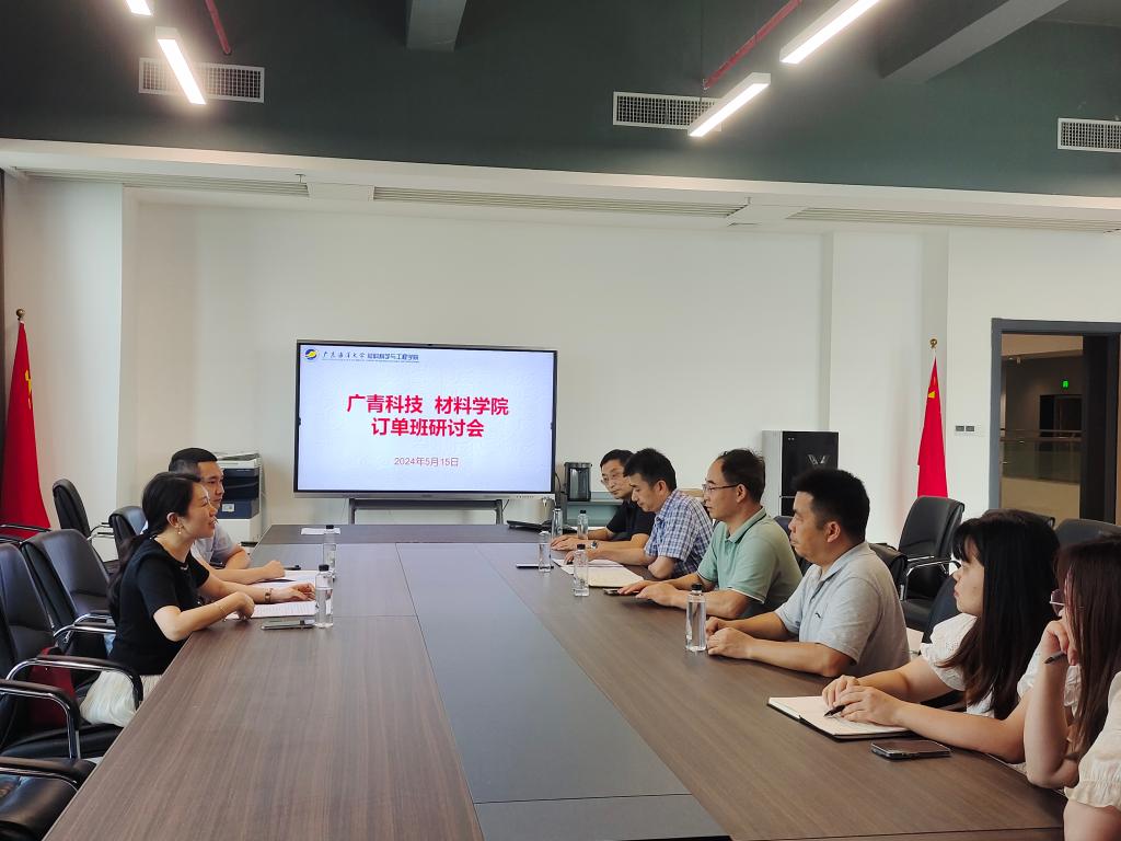5月15日下午,开云kaiyun登录入口材料科学与工程学院联合广东广青金属科技有限公司,在厚为楼408会议室举办订单班研讨会。材料科学与工程学院党总支书记李毅、院长师文庆、副院长尹冬松以及骨干教师代表聂小武教授等人与广东广青金属科技有限公司综合部副部长兼人力资源科科长张艺玲、梁喜畅展开深度洽谈。会议由院长师文庆主持。