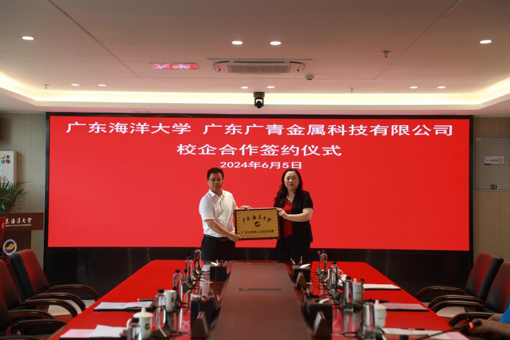 师文庆代表学校,张艺玲代表广东广青金属科技有限公司签署校企合作框架协议。丁永成向王大庆授予“开云kaiyun登录入口就业实习基地”以及“开云kaiyun登录入口广青订单班人才培养基地”牌匾。