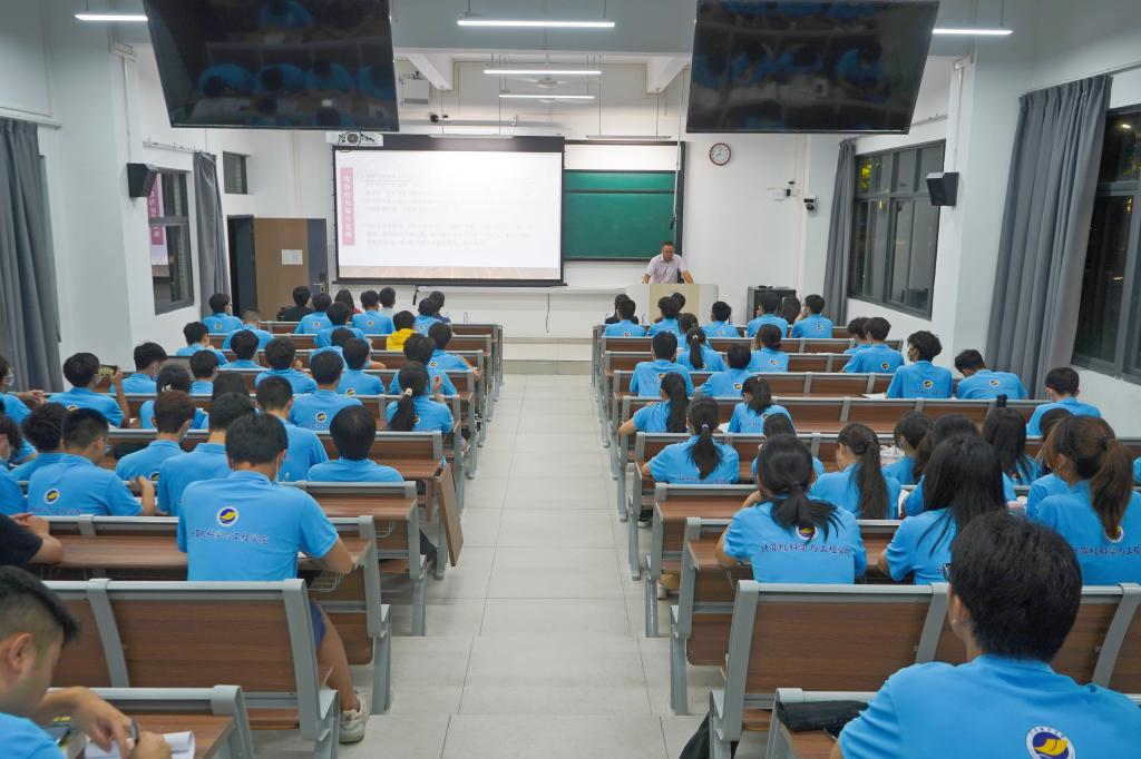 为深入开展学习贯彻习近平新时代中国特色社会主义思想主题教育,引导广大青年教师、学生坚持不懈用习近平新时代中国特色社会主义思想凝心铸魂,5月29日晚上,计算机科学与工程学院在慎思楼A101组织开展主题教育专题党课。阳江校区管委会副主任张界新、计算机科学与工程学院党支部书记刘利群、支部党员同志、党员发展对象及入党积极分子约80人参加专题党课学习。