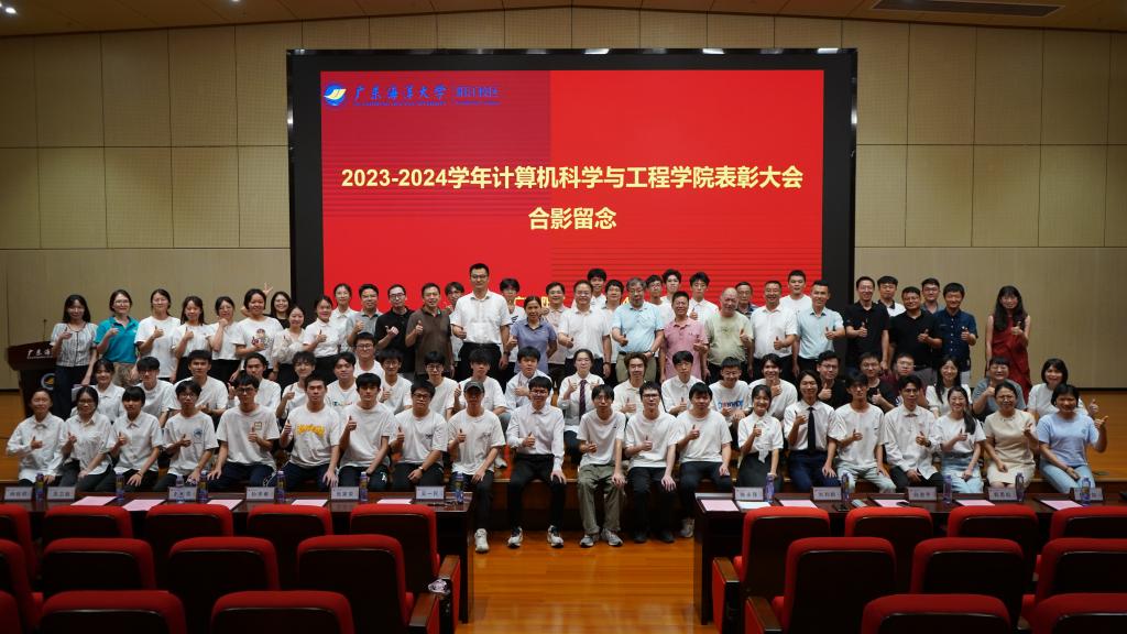 为表彰学生在各项赛事中的突出表现,继续发挥好带头引领作用,7月4日晚上,计算机科学与工程学院在海纳楼113报告厅隆重举行2023-2024学年表彰大会。阳江校区党委副书记陈永强、阳江校区综合事务部部长张家荣、阳江校区教学科研部部长白浚宇、阳江校区学生事务部部长孙学甫,学院党总支书记刘利群、院长吴一民、副院长赵男男、全体教职工及学生代表参加本次大会。