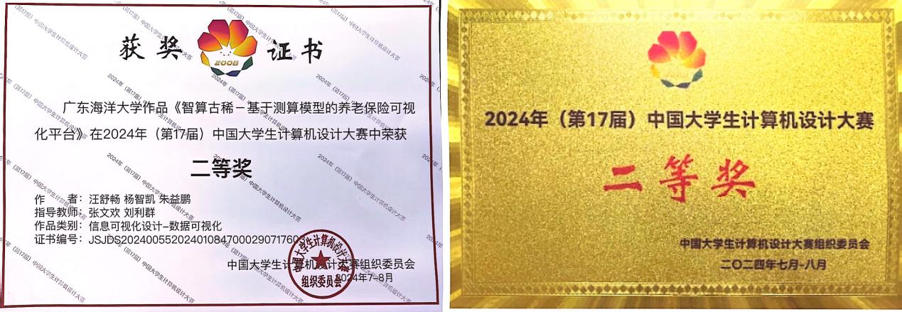 8月18日至21日,2024年(第17届)中国大学生计算机设计大赛全国总决赛(信息可视化设计/计算机音乐创作赛道)在浙江师范大学举办。学校计算机科学与工程学院参赛的学生团队与来自全国的1200余名师生参与角逐,最终脱颖而出,作品《智算古稀——基于测算模型的养老保险可视化平台》荣获全国二等奖。