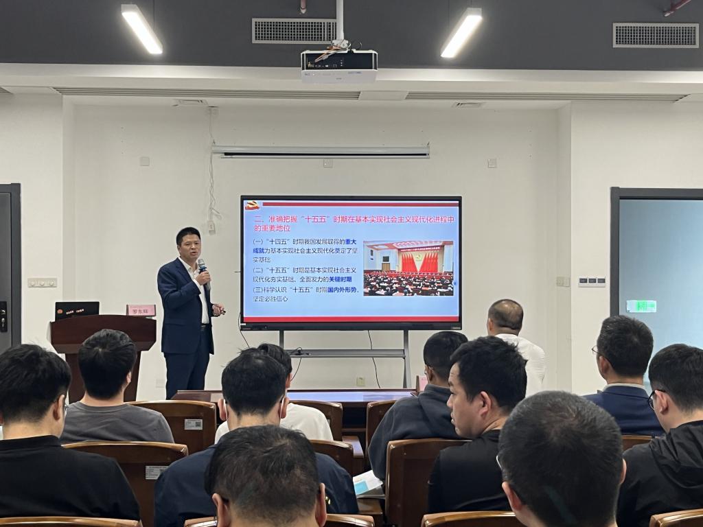 学校理论宣讲团成员罗东辉围绕五大核心主题展开解读,阐明党的二十届四中全会是在即将进入基本实现社会主义现代化夯实基础、全面发力的关键时期召开的一次十分重要的会议,强调其承前启后的历史意义。随后,他系统阐释“十五五”时期的重要地位、经济社会发展的指导方针与主要目标,详细解读了现代化产业体系建设、科技自立自强等战略任务与重大举措。最后着重强调坚持党的全面领导是推进中国式现代化的根本保证,呼吁凝聚起共同奋斗的磅礴力量。