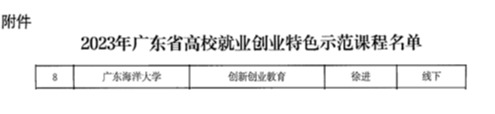 近日,广东省教育厅公布2023年广东省高校就业创业特色示范课程名单的通知,开云官网徐进老师主持的《创新创业教育》课程获评为广东省高校就业创业特色示范课程。