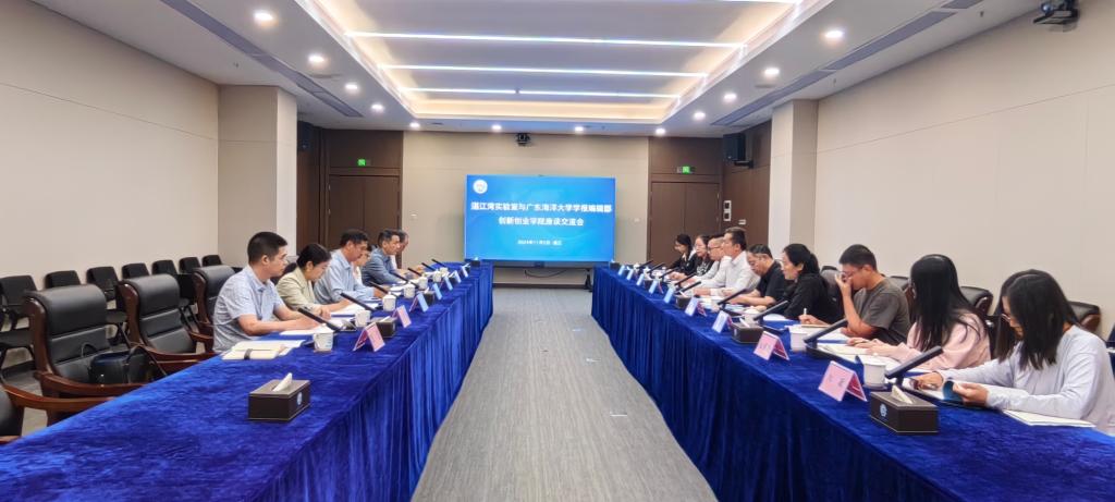 为深化学校创新创业教育改革,拓宽校所合作新路径,11月5日,创新创业学院常务副院长韩卫国、学报编辑部主任陈庄一行7人前往湛江湾实验室开展调研交流。湛江湾实验室副主任兼海洋生物资源开发研究中心主任洪鹏志、人力资源部副部长陈圆、海洋生物资源开发研究中心副主任黄洋及各研究中心负责人参加座谈会。