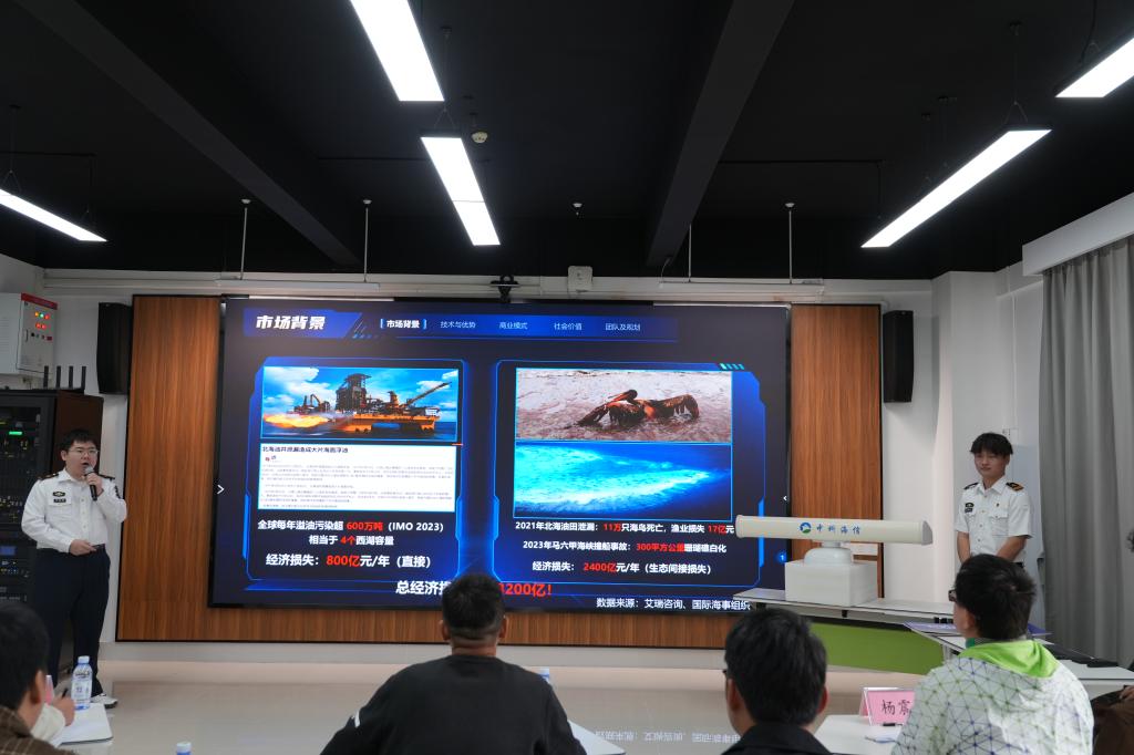 4月2日,训练营迎来第三阶段的成果汇报展示环节。广学先锋营的10支项目团队在海创楼304室进行了成果汇报。汇报采用“7+3”模式,项目团队通过PPT演示、项目陈述和现场答辩对项目成果进行全面展示。评审团根据项目展示和现场答辩情况进行打分。最终,《“渔”水情深-助力现代化海洋牧场建设》项目以第一名的成绩直通2025年中国国际大学生创新大赛校级复赛。
