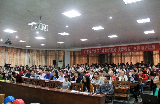 11月23日下午,学校在湖光校区兴教楼110室举行了以“培育好家风•我爱我家”为主题的演讲比赛。学校党委副书记、工会主席张兰英,副校长高秀梅,湛江市总工会宣教部部长、女职委副主任陈少霞,市女职委副秘书长伍向平等应邀出席了活动。各部门工会主席、校(部门)工会女工委员、参赛选手亲友团及部分教职工代表共计280余人参加了活动。
