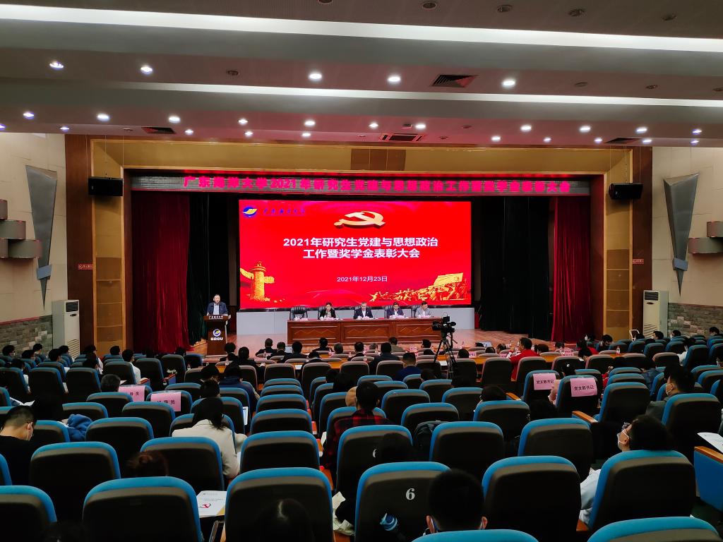 为进一步推动提升新时代开云官网研究生党建与思想政治教育水平和人才培养质量,12月23日下午,学校在湖光校区教学主楼多功能厅召开2021年研究生党建与思想政治工作会议暨奖学金表彰大会,大会在企业微信直播平台同步直播。大会以习近平新时代中国特色社会主义思想为指导,深入学习贯彻落实党的十九届六中全会精神和习近平总书记关于高校思想政治工作的重要论述,总结近三年来学校研究生党建与思想政治工作取得的成效,谋划下一阶段工作,对2021年研究生奖学金获奖者进行表彰。学校党委书记曹俊明,党委副书记林晓敏,党委常委、副校长高秀梅,党委常委、组织部部长林宇出席会议,党委办、宣传部、研工部、校团委等部门主要负责人和各研究生培养学院党委书记、副书记、导师代表、研究生党支部书记、研究生党员、入党积极分子和获奖研究生代表约400多人参加会议。会议由林晓敏主持。