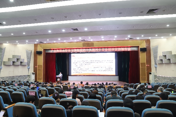 为确保党的十九届四中全会精神学习宣讲全覆盖、无盲区,按照学校党委统一部署,连日来,学校连续开展了数场学习贯彻党的十九届四中全会精神宣讲活动,在全校掀起学习贯彻全会精神热潮。