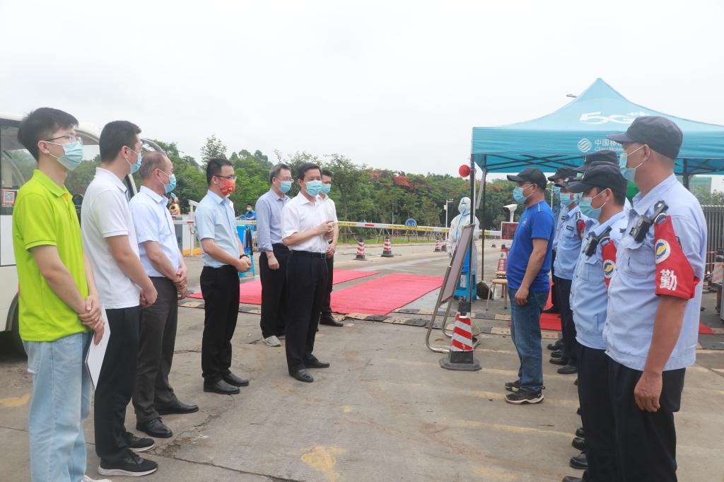 5月13日上午,学校领导曹俊明、潘新祥、彭权群、林晓敏、邓逢光、林宇等分别前往湖光校区校门、就业楼、学生公寓看望慰问安保及学工人员,向坚守在防控一线的工作人员表示诚挚慰问和亲切问候。