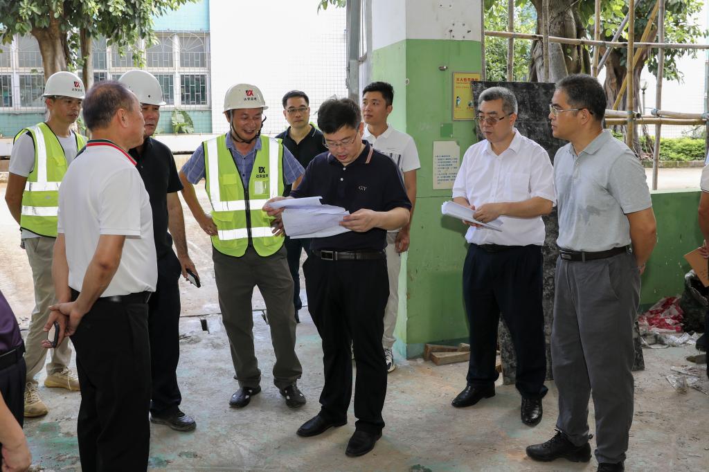 杨洲一行先后走访调研了湖光校区西区泵房蓄水池项目、“一站式”学生社区综合管理模式试点建设项目、生态停车场项目、文科教学实验综合楼项目、新工科综合创新实训中心机加工车间改造项目、智慧后勤建设项目、东区3个篮球场地改造项目、科技楼教学楼卫生间改造项目、教师休息室改造项目等9个民生实事项目,通过实地调研和现场办公的方式,进一步察民情、解民忧,推动加快解决广大师生“急难愁盼”的问题。