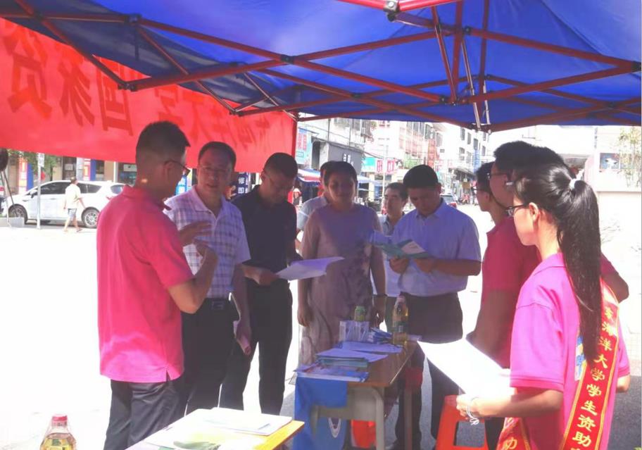 据悉,从8月16日至21日,该队顶着烈日酷暑,冒着大雨淋漓,根据不同宣传对象人群的作息时间,起早贪黑,陆续在镇政府大门口、镇体育服务中心、大担村广场,进行了摆摊宣传;在镇客运站候车厅、镇圩菜市场、街道等地进行街访;深入美东村等十个自然村进行了走村入户的宣传;对六户贫困生家庭进行了家访。共计派发宣传资料三百余份,完成调查问卷约一百份,总宣传人次近五百人。