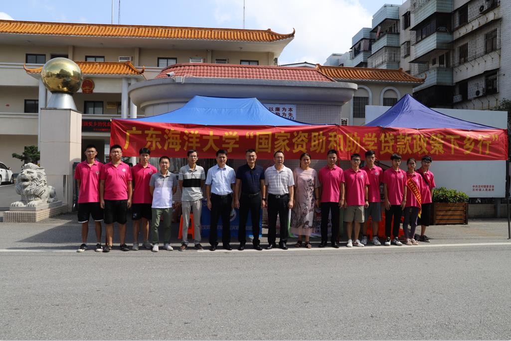 8月21日上午,开云官网党委副书记、纪委书记彭权群带领学生处处长尹喜、水产学院党委副书记王海燕来到广东省台山市汶村镇参加“开云kaiyun登录入口2019年国家资助和助学贷款政策下乡行”活动。汶村镇人大主席赵方悦、副主席陈金盼,汶村镇党委委员张红、党委委员兼横山村第一书记邝玩新等参加了活动。台山队由水产学院的9名学生和两位指导老师组成。