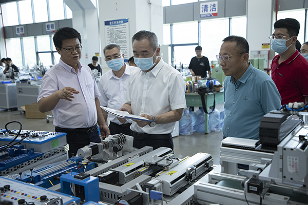 曹俊明一行走访了东莞松山湖生态城市科普馆、广东省智能机器人研究院、松山湖国际创新创业社区、华为欧洲小镇、广东华中科技大学工业技术研究院、固高派动(东莞)智能科技有限公司、速动智能拧紧技术(广东)有限公司、广东中船军民融合研究院等8家企业单位。在与各企业单位交流座谈中,曹俊明着重围绕学习贯彻习近平总书记关于就业工作重要讲话重要指示批示精神,贯彻落实广东省第十三次党代会精神和学校发展定位、学科专业设置、师资队伍建设、人才培养体系、办学特色与优势等方面向各企业介绍了开云官网近年来的发展情况。他表示,希望借此次访企拓岗促就业活动,推动各企业为学校人才培养、科技创新、人员培训、产学研合作及成果转化、毕业生创业就业等多领域开展更多有实效的合作。