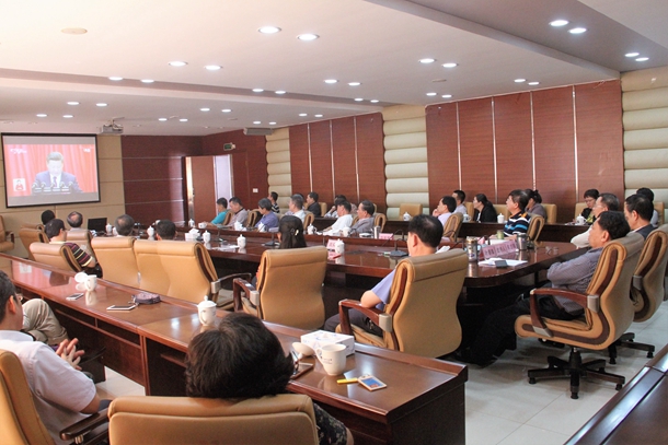 学校领导和部分党政干部在行政楼五楼会议室观看十九大开幕会