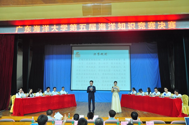 9月27日晚,学校在湖光校区多功能厅举行第五届海洋知识竞赛。校党委副书记、纪委书记彭权群,学生处处长李育芳,海洋与气象学院党委书记宋雅,化学与环境学院党委副书记柯伟,机械与动力工程学院党委副书记欧卫军,校团委副书记袁仁广等领导和400余名师生观看了比赛,李锋、陈清香、曹瑞雪、黄技、闫勖等五位老师担任比赛评委。