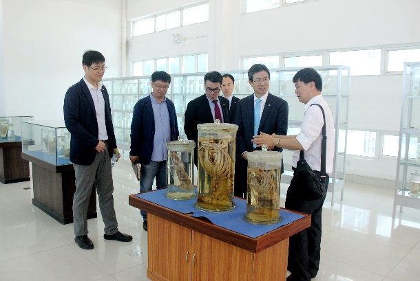 向献兵感谢去年11月到访釜庆国立大学期间KIM Young-Seup校长的热情接待,强调要认真落实两校合作备忘录及学生交换生项目协议,并以此为起点,进一步推进教师交流和科研合作,深化两校的全面合作关系,为中韩两国海洋水产事业发展做出贡献。