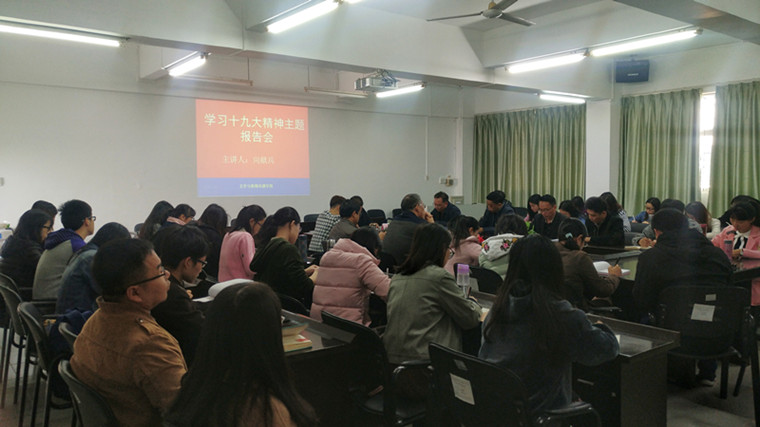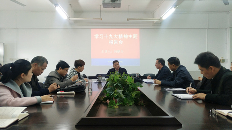 12月25日上午,学校党委副书记向献兵到文学与新闻传播学院进行调研,并于主楼713室作十九大精神学习辅导报告。本次辅导报告会由学院党总支副书记董萍主持,院系领导、总支委员与支部委员、辅导员、部分教师和学生党员参加。