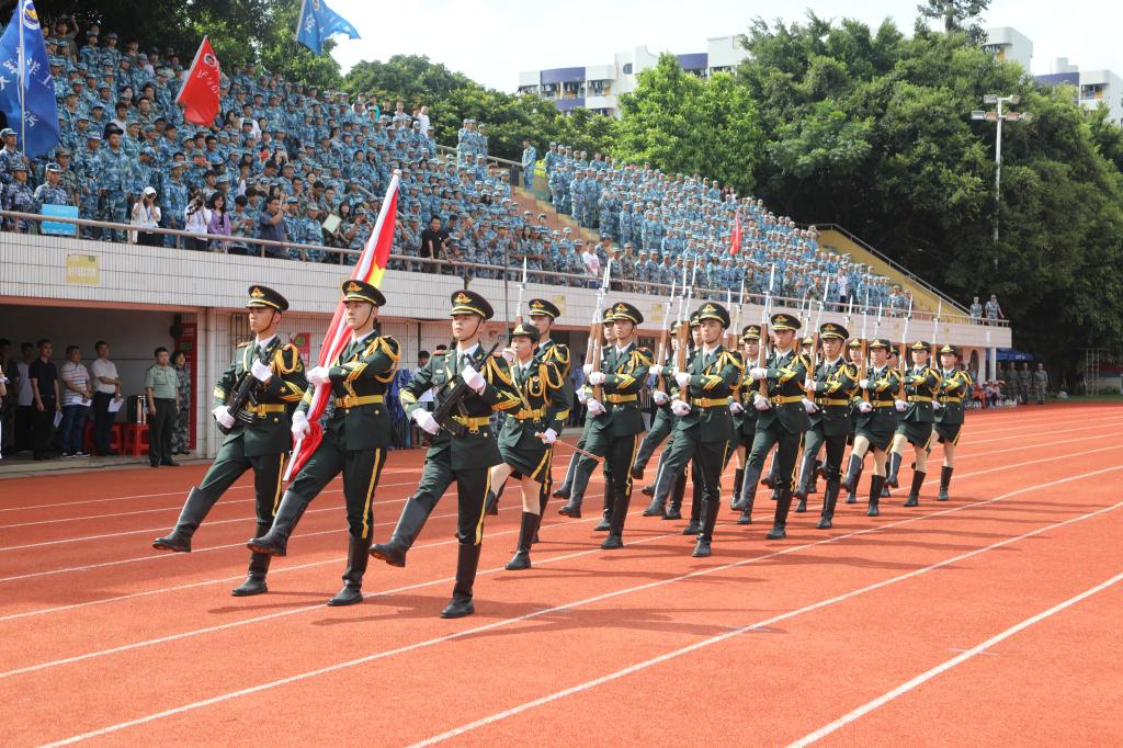 9月29号下午,学校2020级新生军事技能训练成果汇报暨总结表彰大会在湖光校区东区运动场举行。学校领导曹俊明、彭权群、林晓敏、刘东超、宁凌、林宇,承训单位有关领导出席大会。学校相关职能部门负责人,各学院副书记、全体教官、跟训老师、2020级全体参训新生等4900多名师生现场参加了大会,另有4400多名新生在学校企业微信平台在线观看大会直播。副校长、军训旅旅长刘东超主持了大会。
