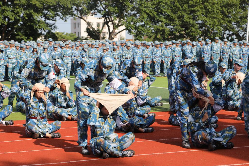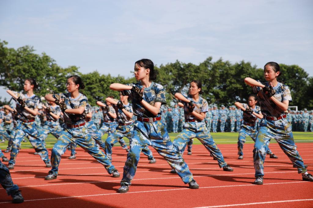 分列式表演、军体拳、擒敌拳、战地救护演示……在检阅仪式和军事汇报表演环节,同学们以铿锵有力的步伐、整齐响亮的口号、精准规范的动作向全校师生展现了军事技能训练取得的优异成果。承训单位领导发表讲话,对同学们的训练成果表示充分肯定。