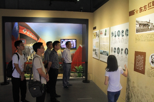 接着,彭权群一行参观了海丰革命烈士暨革命斗争史纪念馆。纪念馆记录了从上世纪二十年代到解放战争时期海丰人民的革命斗争史。纪念馆布局分列六个展览室,分为海丰历史革命大事记、五四运动及农民运动时期、农民运动高潮及国共合作时期、抗日战争时期、解放战争时期和临时展厅等。
