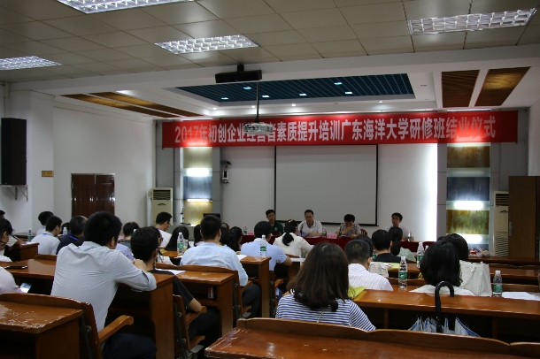 6月6日下午,2017年广东省初创企业经营者素质提升培训开云kaiyun登录入口研修班在霞山校区图书馆报告厅举行结班仪式。党委副书记、纪委书记彭权群、广东省人社厅创业指导处副处长俞剑锋,湛江市人社局副局长周新发,招生与就业指导中心主任郑一鸣以及30名培训班学员参加了结业仪式。结业仪式由郑一鸣主持。