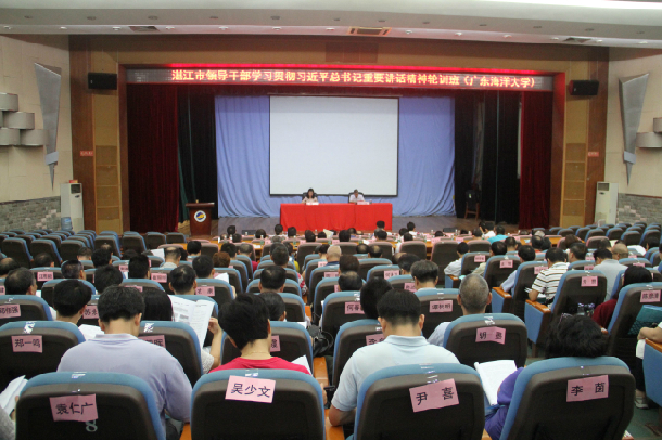 两天的学习研讨中,学员们认真学习研读习近平总书记重要讲话的原文,观看了湛江市委书记郑人豪同志在全市县处级主要领导干部学习贯彻习近平总书记重要讲话精神专题研讨班开班式上的动员讲话视频和市长姜建军同志在结业式上的总结讲话视频,学员们结合学校和岗位实际就深入学习贯彻总书记重要讲话精神展开了热烈讨论。结业式上,农学院副院长陈进军同志、研究生工作部副部长陈汉能同志、经济学院副院长居占杰同志、海洋与气象学院党委书记宋雅同志分别作了交流发言。