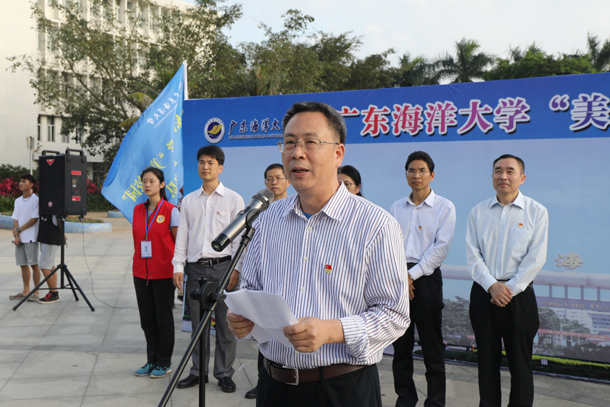 仪式开始,校学生会执行主席刘学慈同学宣读了学校《打造“共建、共治、共享”美丽校园倡议书》,向全校师生发出“爱护环境,共创绿色美;嘉言懿行,共创安全美;融洽相处,共创和谐美;传承创新,共创文化美;勤学好读,共创勤学美”的倡议,号召广大师生从现在做起,从点滴小事做起,从身边做起,主动参与美丽校园建设,为建设卫生、整洁、文明、和谐、美丽的海大校园贡献智慧和力量。