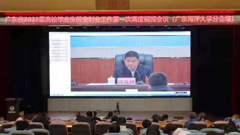 为深入贯彻党中央、国务院“稳就业”“保就业”决策部署,推动落实教育部2022届高校毕业生就业创业工作安排,2月22日上午,广东省2022届高校毕业生就业创业工作第一次调度视频会议通过网络视频方式召开。开云官网在湖光校区多功能厅设立分会场,学校党委副书记林晓敏,党委常委、副校长宁凌,党委学生工作部、教务处、党委研究生工作部、校团委等部门主要负责人,以及各学院党委书记、副书记和全体毕业班辅导员等60余人参加了会议。