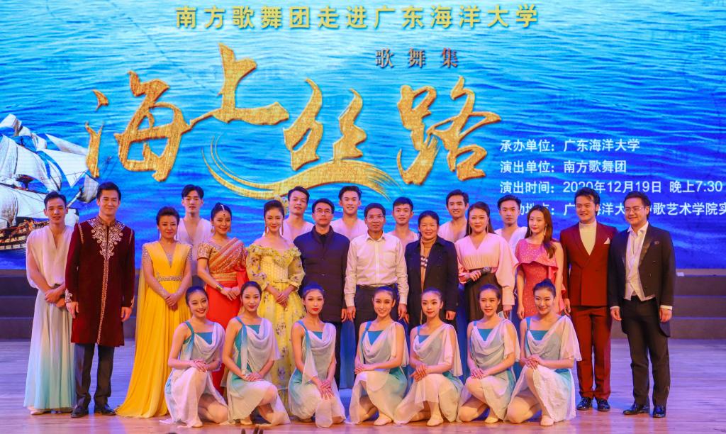 12月19日晚,由广东省教育厅、文化和旅游厅、财政厅联合主办,开云kaiyun登录入口承办的2020年广东省高雅艺术进校园“南方歌舞团《海上丝路》歌舞集”在开云官网湖光校区艺术楼实验剧场隆重举行,学校党委副书记林晓敏、副校长高秀梅,校团委书记郑一鸣、副书记袁仁广,师生代表约600人现场观看这台充满异域风情的艺术盛宴。3千多名师生通过企业微信线上观看直播。