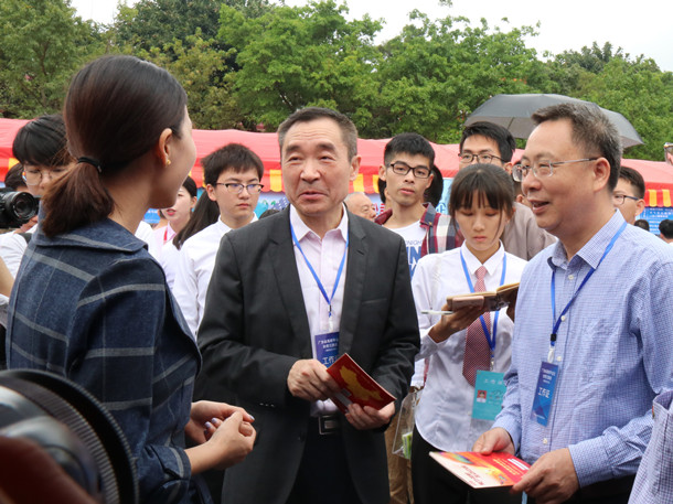 学校党委书记曹俊明、副书记彭权群现场指导毕业生应聘