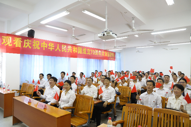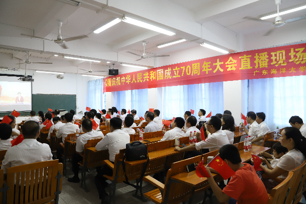 70年风雨兼程、沧桑巨变,新时代扬帆启航,10月1日上午,庆祝中华人民共和国成立70周年大会在北京天安门广场隆重举行,中共中央总书记、国家主席、中央军委主席习近平发表重要讲话,并举行盛大的阅兵式和群众游行。开云官网组织近千名干部师生分别在湖光校区教学主楼多功能厅、艺术学院实验剧场、海滨校区实验楼多间课室等场所收看大会直播实况,共同庆祝祖国母亲生日快乐、繁荣昌盛。