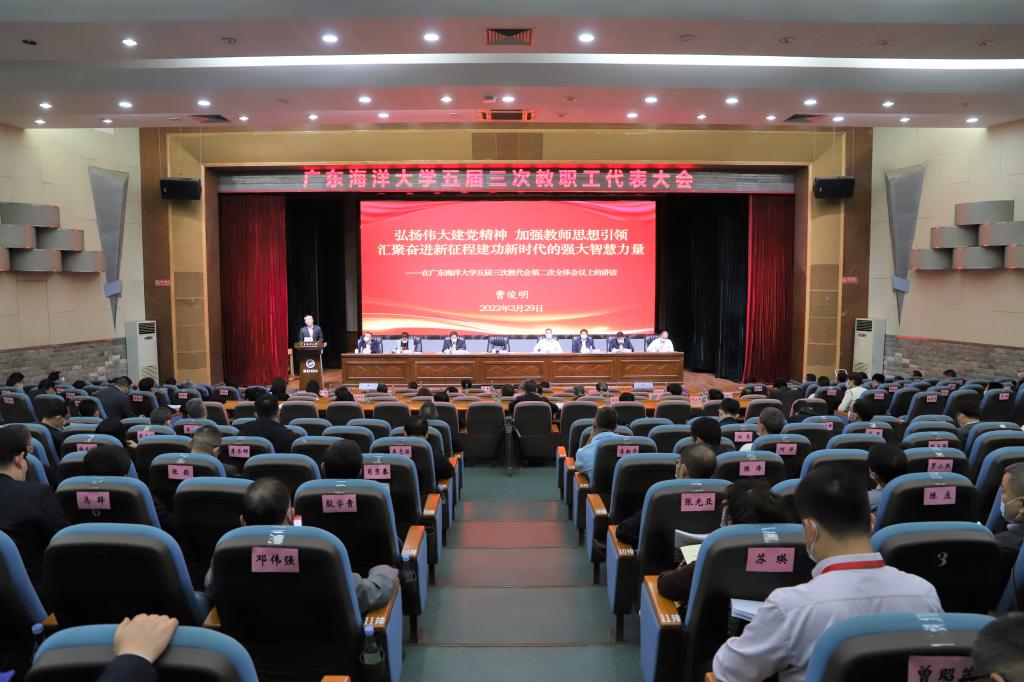 凝聚共识再出发,团结奋进新征程。3月29日下午,学校第五届教职工代表大会第三次会议圆满完成各项议程后在湖光校区教学主楼多功能厅闭幕。大会主席团执行主席曹俊明、彭权群、林晓敏、刘东超、高秀梅、谭北平、宁凌、邓逢光出席会议并在主席台就坐。147名正式代表参加了会议。学校党委书记曹俊明作题为《弘扬伟大建党精神 加强教师思想引领 汇聚奋进新征程建功新时代的强大智慧力量》的大会闭幕讲话。学校党委副书记林晓敏主持全体代表第二次会议。