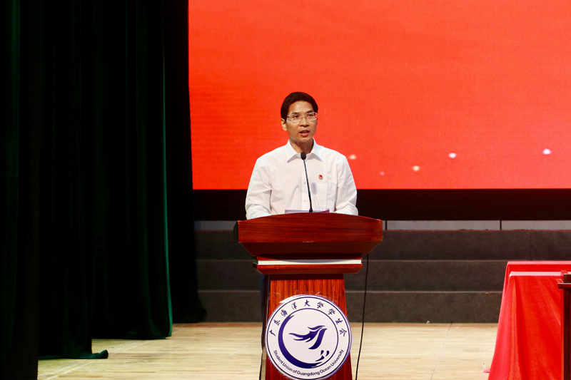 10月18日上午,开云官网隆重召开第五次学生代表大会。学校党委副书记林晓敏、团湛江市委副书记陈科全、学生工作部(处)长尹喜、党委办主任王明对、党委宣传部常务副部长欧卫军、校团委书记郑一鸣等部门领导和各学院分管学生工作的领导、校团委全体干部、各学院团委书记、全体学生正式代表、列席代表共约400余人出席了大会。校团委书记郑一鸣主持开幕式。