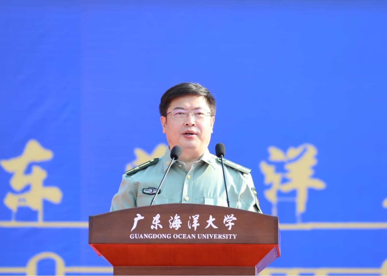 麻章区人民武装部上校政委孙立昆强调了军训的重要性,对全体教官和同学们分别提出了要求和期许,并预祝本次军训工作取得圆满成功。中歌艺术学院王潇同学代表参训学生发言,表示将高质量、高标准完成训练任务,以振奋的精神面貌接受军训考验。