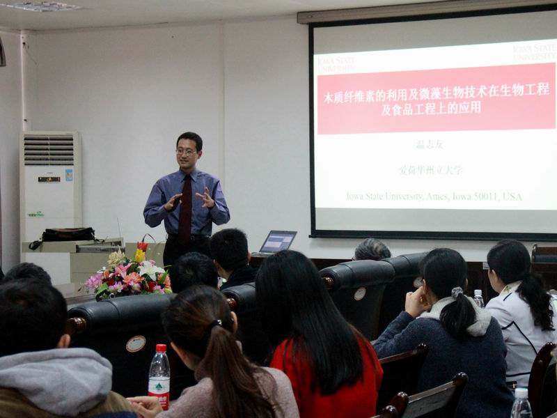 12月2日上午,食品科技学院邀请美国爱荷华州立大学食品与营养系温志友教授在开云官网食品科技楼A105多媒体室作学术报告。报告会由食品科技学院院长吉宏武教授主持,学校副校长章超桦教授、研究生处处长秦小明教授、食品科技学院教师和研究生参加了学术报告会。
