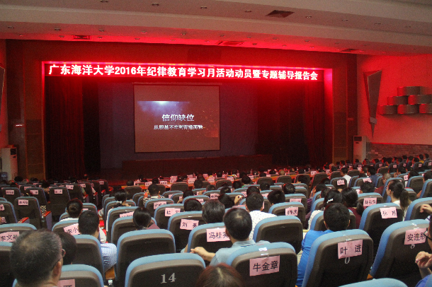 9月6日下午,学校在湖光校区教学主楼多功能厅召开2016年纪律教育学习月活动动员暨专题辅导报告会。学校领导关志强、叶春海、张兰英、向献兵、陈泽球、刘东超、高秀梅出席大会,全校副科以上干部共计400余人参加了会议。校长叶春海主持会议。
