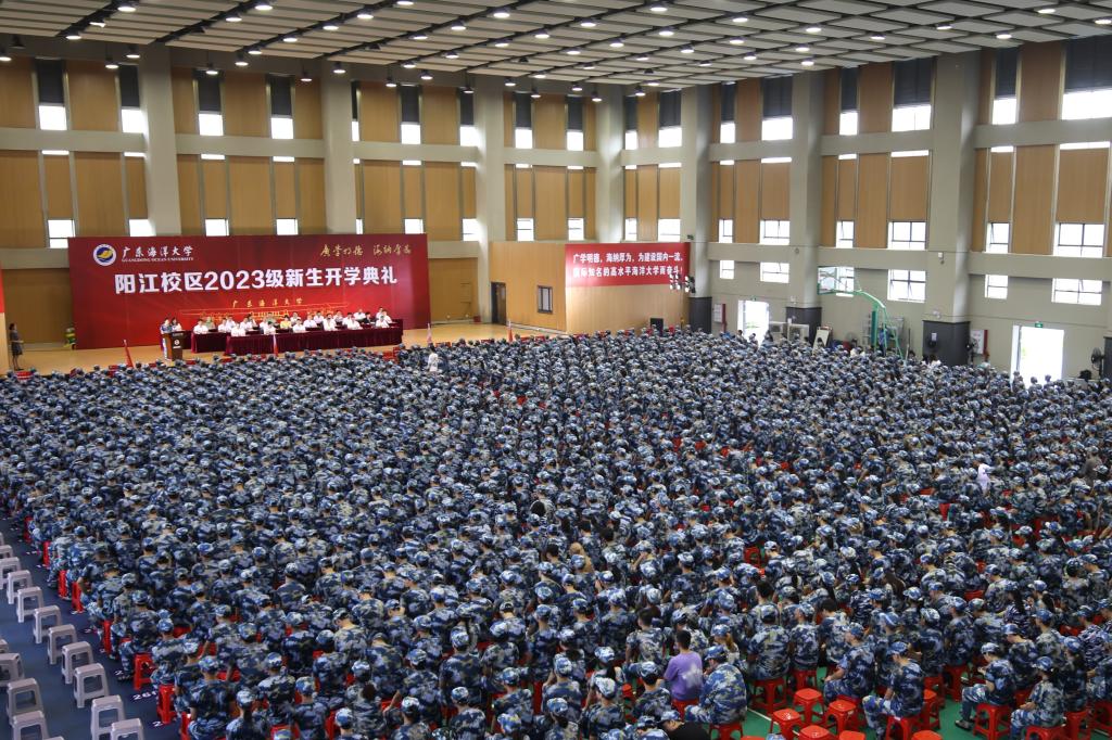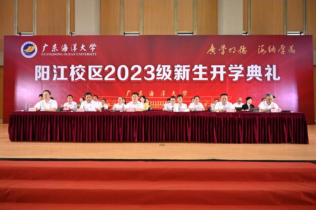 9月15日上午,阳江校区2023级新生开学典礼在海阳馆举行。学校党委书记杨洲、阳江市副市长柯燕,学校领导林晓敏、宁凌、林宇,学校关工委主任彭权群出席典礼。副校长、阳江校区党委书记宁凌并主持典礼。阳江市政府副秘书长黄怡,学校党委办公室主任、机关党委书记王明对,校区领导周昌仕、陈永强、毛琪、李鹏虹,校区各职能部门负责人、各学院领导、全体辅导员及全体2023级新生参加开学典礼。