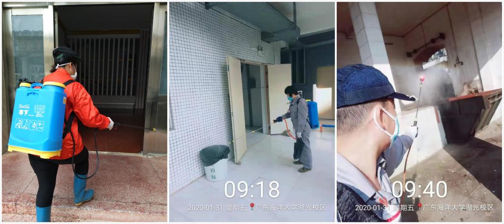 后勤人员对学校生活宿舍区、教学区、办公区等重点公共区域开展全面消毒