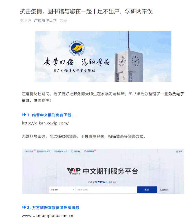 在疫情防控期间,在家就是做贡献的特殊时节,为便于广大师生在家也能免费使用数据库资源,图书馆将与大家并肩作战,尽最大努力,以多终端、多渠道为校外师生提供便利的资源服务:为同学们提供优质学习资源,为学校和老师提供学习和科研支持。