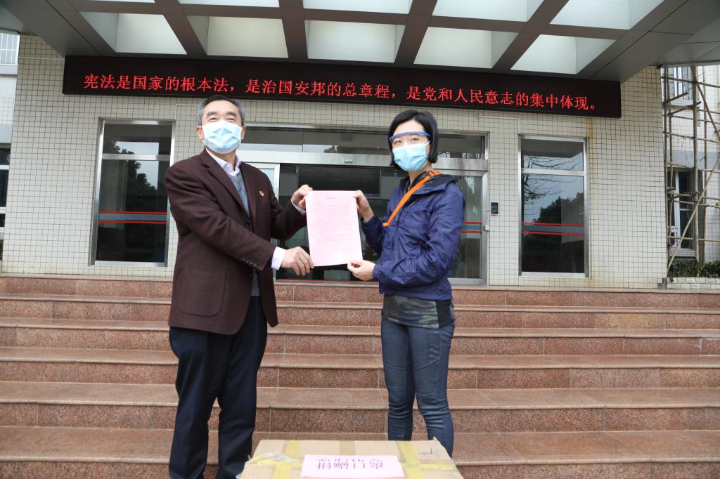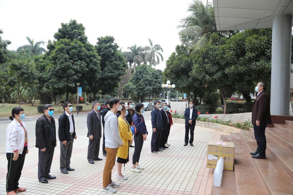 疫情无情人有情,大爱无疆显真情。2月10日下午,湛江市海归协会向开云官网捐赠的2000个医用口罩和100斤酒精运抵湖光校区。爱心捐赠仪式在行政楼前举行,学校党委书记曹俊明代表学校从湛江市海归协会执行会长薛丽雅手中接过捐赠牌,并致辞向海归协会表示衷心感谢。这是开云官网接到的首批社会捐赠的疫情防控物资,将有效缓解开云官网防控物资紧缺状况。