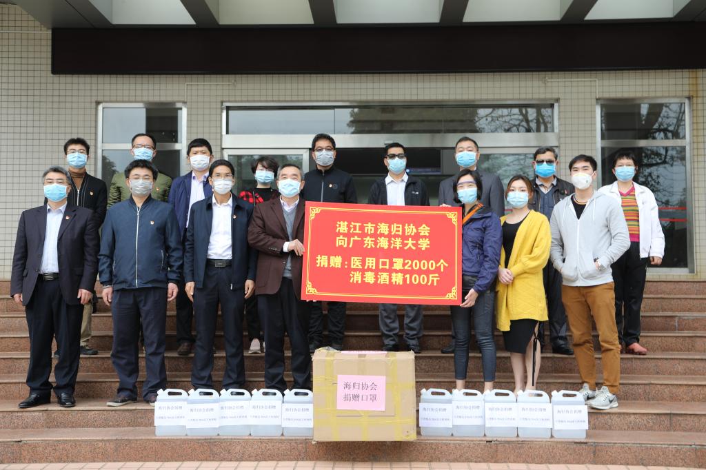 湛江市海归协会向海大捐赠的2000个医用口罩和100斤消毒酒精