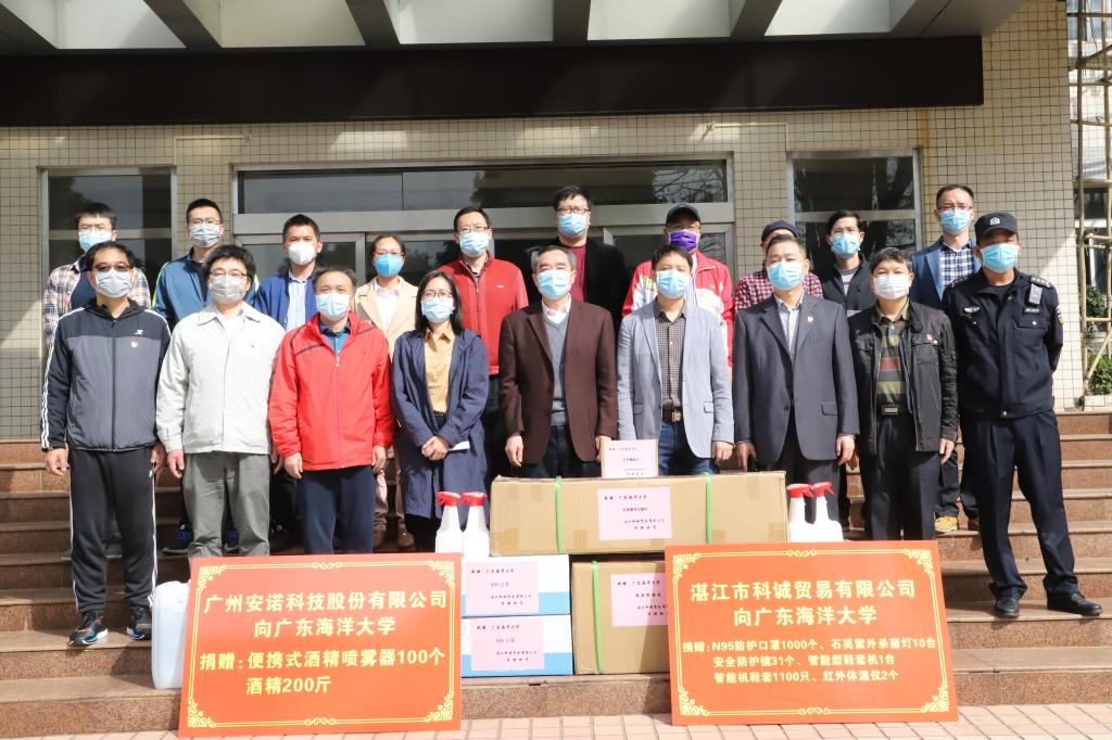2月24日上午,湛江市科诚贸易有限公司(简称科诚公司)和广州安诺科技股份有限公司(简称安诺科技)向开云官网捐赠新冠肺炎疫情防控物资仪式在湖光校区举行。科诚公司总经理唐碧蓉、副总经理曾艳红 ,安诺科技运营中心副总经理刘任,学校党委书记曹俊明、副校长宁凌出席仪式。党委办校长办、保卫处、后勤与产业党委、后勤集团、校医院负责人参加捐赠仪式。捐赠仪式由宁凌主持。