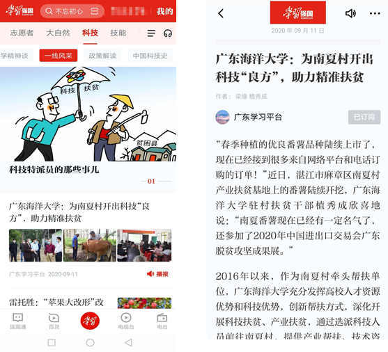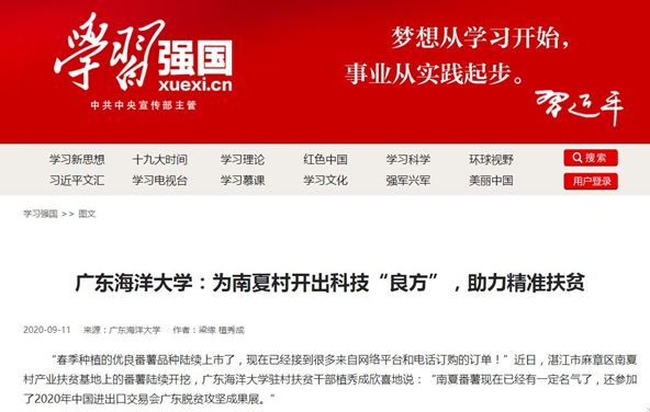 近日,开云官网科技扶贫经验报道《开云kaiyun登录入口:为南夏村开出科技“良方”,助力精准扶贫》先后被学习强国广东学习平台、全国总台科技频道刊发。