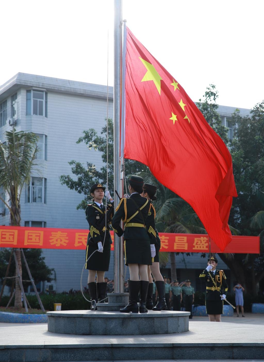 10月1日早上,学校分别在湖光校区海洋广场和海滨校区共青广场隆重举行庆祝新中国成立71周年升旗仪式,为伟大祖国母亲送上诚挚的生日祝福。近1000名师生现场参加升旗仪式,另有7200余人次师生通过“云端”参加仪式。学校领导曹俊明、林晓敏、林宇出席湖光校区升旗仪式,彭权群、刘东超、宁凌出席海滨校区升旗仪式。党委副书记林晓敏、副校长宁凌分别主持湖光校区和海滨校区仪式。