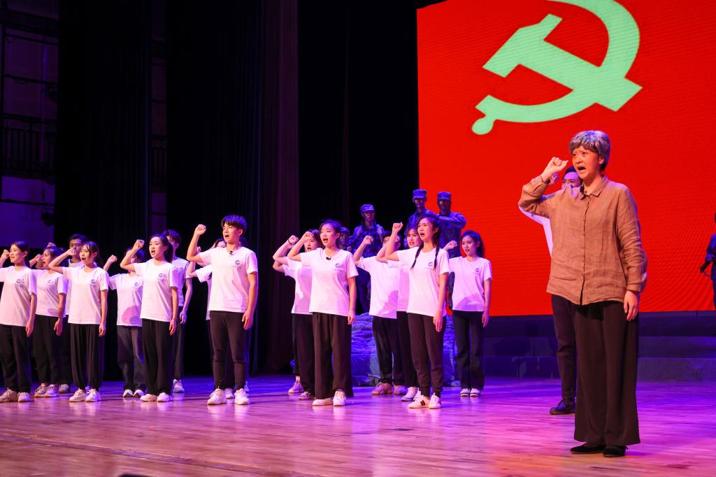 表彰结束后,全体与会人员观看五四文艺晚会。晚会以继承和弘扬五四精神为主题,分“峥嵘岁月”和“筑梦前行”两个篇章。《鲜红的旗帜》舞者们用飘扬的红旗拉开了晚会的序幕,舞蹈《书的流离》、中国歌剧《沂蒙山》选段《爱永在》和话剧《特殊的党小组会》以生动的表演带领观众回顾中国共产党百年峥嵘的历史岁月。朗诵《在奋斗中回望》慷慨激昂,铿锵有力,歌曲串烧《青春奋起》、大合唱《我爱你中国》《少年》将晚会氛围推向了高潮,同学们用高亢的歌声唱响新时代的赞歌,展现新时代青年矢志不渝、逐梦前行的决心。演出最后,伴随着飘扬的团旗,在场全体师生合唱《光荣啊,中国共青团》,晚会在嘹亮的歌声中落下帷幕。