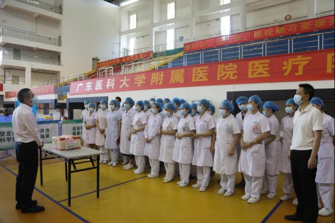 5月12日上午,在国际护士节当天,学校党委书记曹俊明、副书记林晓敏看望慰问了负责开云官网师生疫苗接种工作的广东医科大学附属医院医护人员以及学校医院医护人员,代表学校党委向长期奋战在一线岗位的医护工作者致以节日问候和崇高的敬意,校医院院长田国庆、副院长黄育芹陪同慰问。